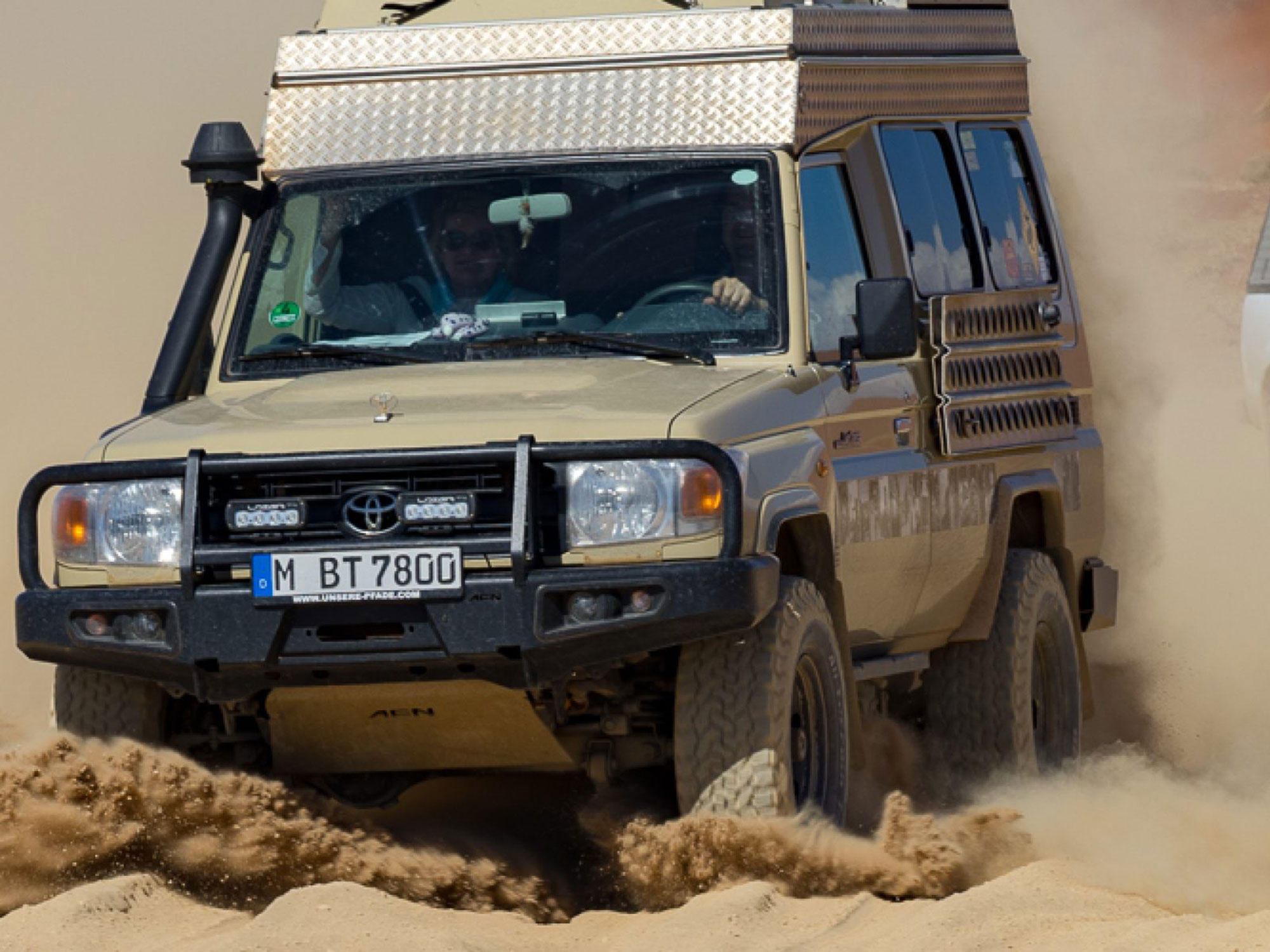 Danach wird es immer schwieriger, den Weg zu finden. Wir wollen eigentlich immer der Küste entlang Richtung Süden. Stattdessen kommen wir von einer Piste auf die nächste, die plötzlich endet oder in die falsche Richtung führt. Steppe und Wüstenlandschaft, soweit das Auge reicht. Nur ab und zu tauchen ein paar Kamele auf.